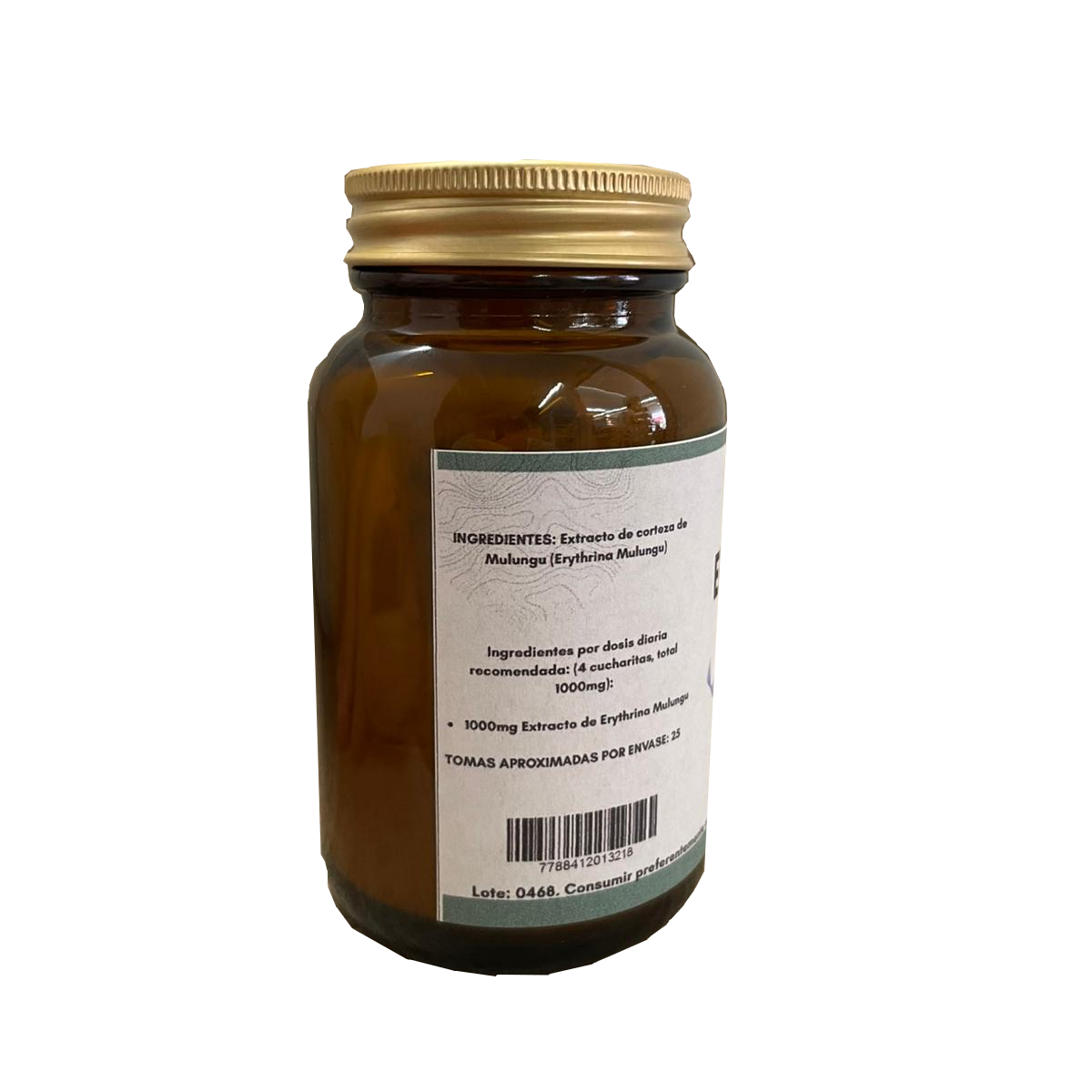 - Extracto de corteza de Mulungu (Erythrina mulungu): 1000 mg por dosis recomendada (4 cucharaditas).